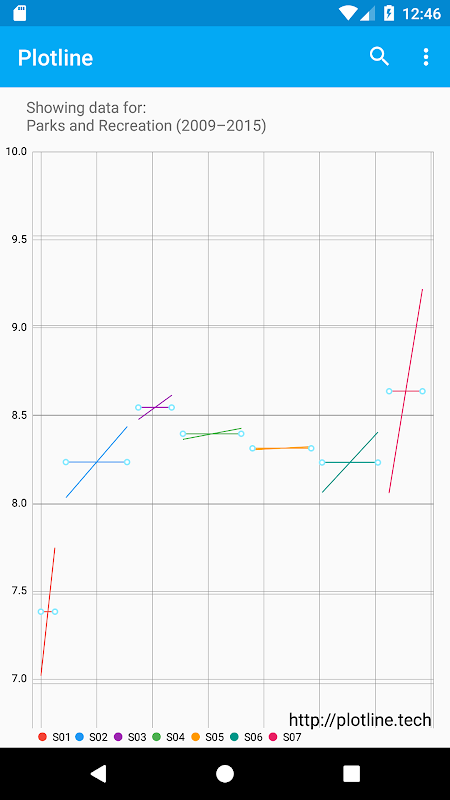 Plotline วางแผนการจัดอันดับตอนของ TV ในแผนภูมิแบบอินเทอร์แอคทีฟทำให้ง่ายต่อการดูว่าคุณภาพของรายการเปลี่ยนแปลงไปอย่างไรเมื่อเวลาผ่านไป มันช่วยให้คุณตรวจสอบได้อย่างรวดเร็วว่าค่าโดยสารรายการในตอนและฤดูกาลที่คุณยังไม่ได้ดูและช่วยให้คุณตัดสินใจว่าจริงควร