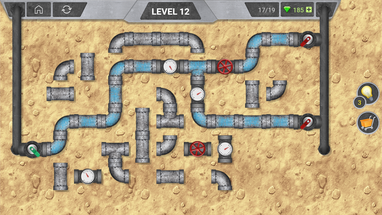 We have prepared superb missions for you to be able to apply all your skills to the puzzles solving. So the game requires working out a strategy to plumb the pipeline by spending as less moves as possible. And then you will become the best plumber in the Plumbers Rating! Develop a clear plumbing strategy before you start to work with the pipes. A smart strategy is very important! The success of the mission depends on how you plumb the pipeline and how many moves you use.