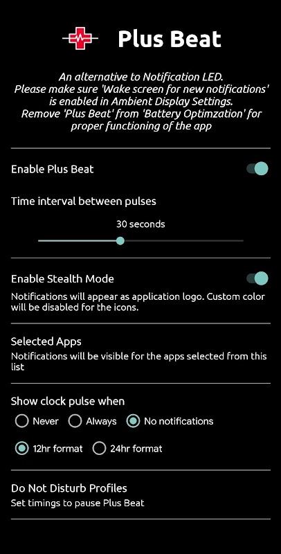 - DND Profiles - Add Do Not Disturb timings to pause Plus Beat.