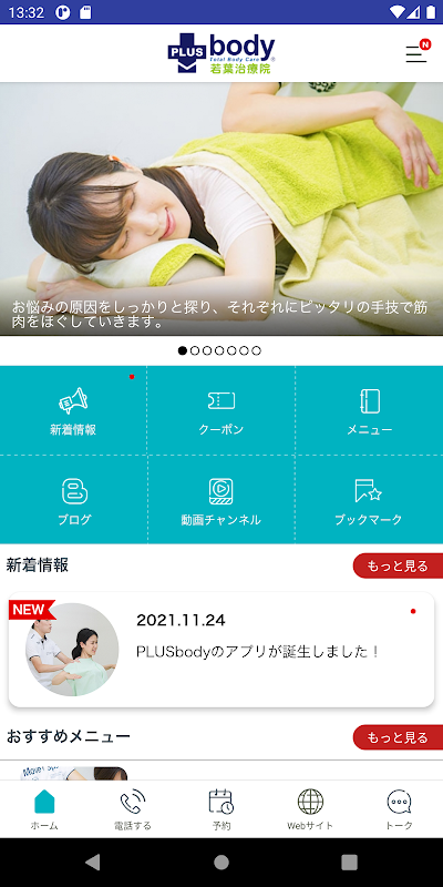 PLUSbody若葉治療院の公式アプリが登場。アプリを通して『PLUSbody若葉治療院』の新着情報やお得な情報をリアルタイムで受け取ることができます。また、いつでもお手元のスマートフォンから、メニューやご希望のお時間帯のチェック・ご予約などが可能です。アプリをインストールしていただくことにより『PLUSbody若葉治療院』を、より便利に身近にご利用していただけます。