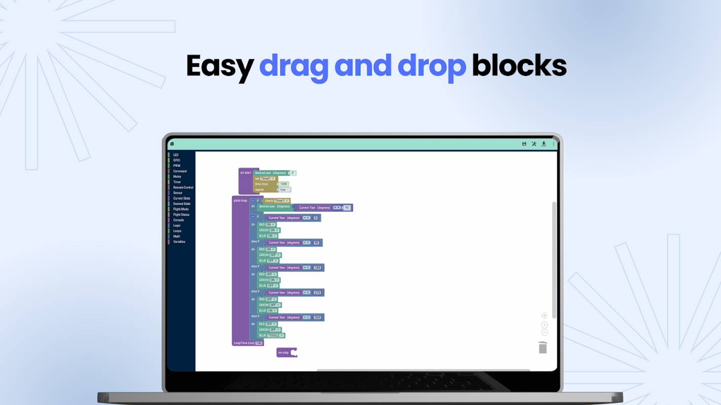 PlutoBlocks เป็นซอฟต์แวร์สำหรับบล็อกการเขียนโปรแกรมเฟิร์มแวร์ Pluto Drone ของคุณ