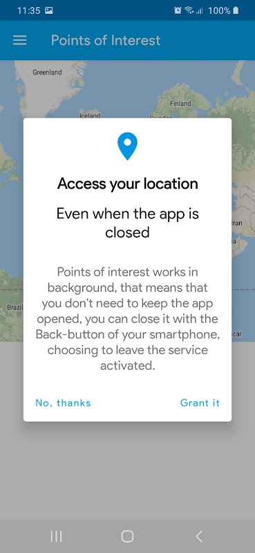แอปนี้เข้าถึงตำแหน่งของคุณในพื้นหลังคุณจะสังเกตได้ว่าที่มุมบนซ้ายมีไอคอน เมื่อคุณออกจากแอประบบจะขอให้คุณหยุดหรือดำเนินการบริการพื้นหลังต่อ หากคุณปิดบริการคุณจะสังเกตเห็นว่าไอคอนหายไป