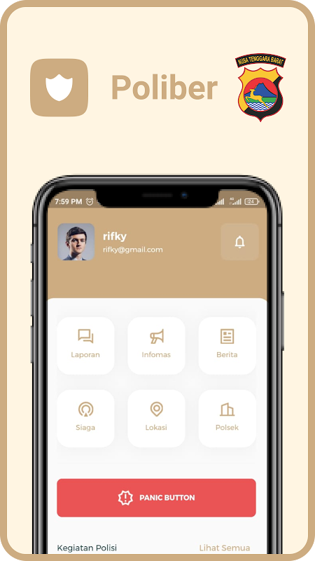 POLIBER merupakan sebuah aplikasi yang mengoperasikan suatu sistem informasi yang dapat mendukung akses kepolisian dan masyarakat dalam memperoleh informasi. POLIBER menyediakan fitur Laporan , infomas (yang berisi informasi terkini yang terjadwal), berita, siaga (yang berisi nomor darurat), lokasi (yang berisikan lokasi tempat-tempat penting ) dan polsek (yang berisi informasi terkini polsek Mataram) serta yang terakhir adalah fitur yang di unggulkan dalam aplikasi POLIBER ini yaitu “Panic Button” yang berfungsi untuk melaporkan keadaan darurat yang lokasinya sudah otomatis terdeteksi pada server POLIBER.
