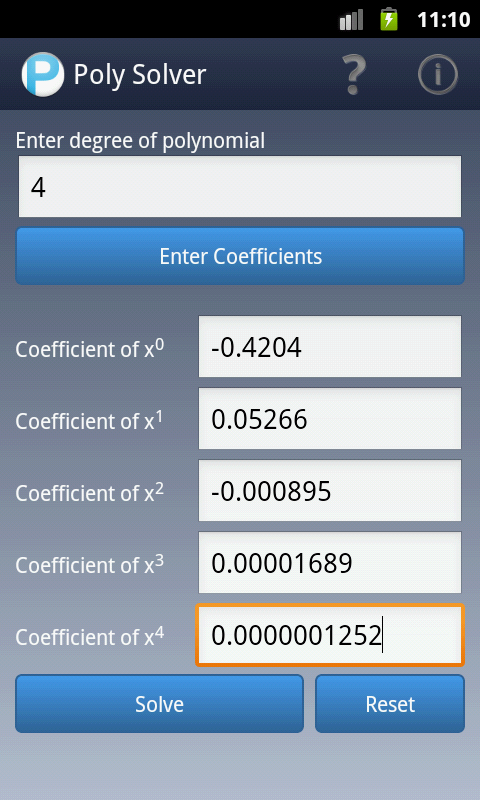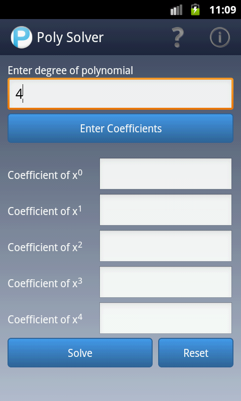 Easy to use tool/solver to find the roots of polynomial equation upto 4th degree. The app gives all