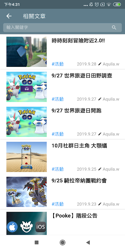 目前功能有 相關文章 田野調查 最新公告 團體戰資訊 各屬性排行 對戰資料 火箭隊資料 蛋的孵化表
