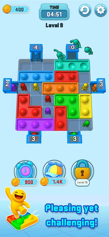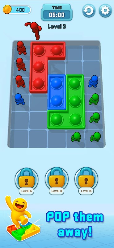 เกมปริศนาที่มนุษย์หลากสีสันกระโดดข้ามบล็อกเพื่อระเบิดลูกแก้ว "Pop It"!