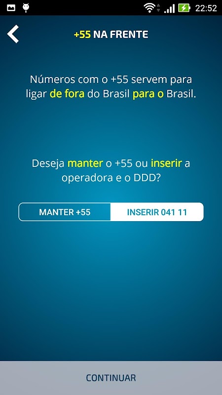 - Opção pra reconhecer números +55 11 (ligação do exterior para o Brasil) e transformá-los em números com operadora e DDD;