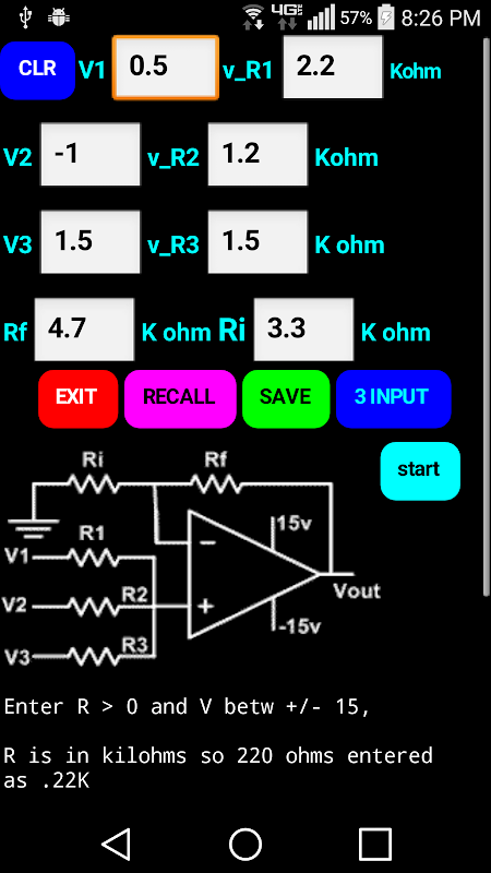 ขั้นตอนโดยขั้นตอนในการแก้ปัญหาที่ 1, 2, 3 บวกกำไรอินพุทแอมป์สหกรณ์