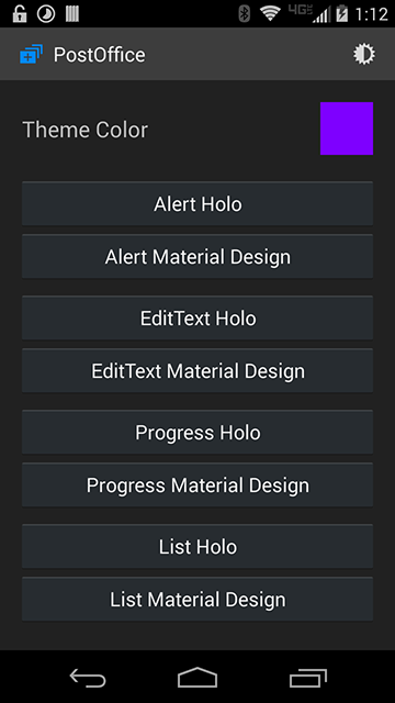 This is the example application of my PostOffice library that lets you easily create Holo or Material Design dialogs in either Light or Dark modes and provides easy customizations and configurations.
