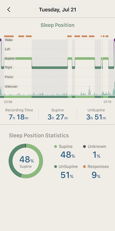 本軟體可透過藍牙與裝置連結,並提供睡眠姿勢的記錄結果。
