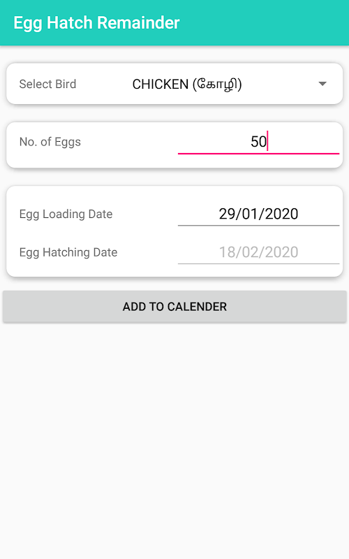 An Android App for Egg Incubator with calendar and remainder