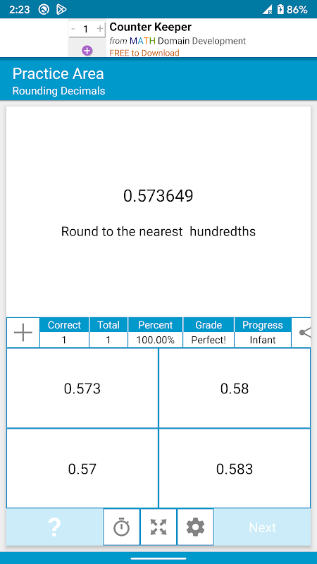 พื้นที่ฝึกฝนคือสถานที่สำหรับพัฒนาความแม่นยำและความเร็วในการแก้ปัญหา มีโจทย์ปรนัยแบบสุ่มจำนวนไม่จำกัด พร้อมเฉลยทีละขั้นตอนหลังจากตอบคำถามแล้ว คุณสามารถตั้งค่าเวลาเฉลี่ยที่เร็วที่สุดหรือสถิติการตอบถูกติดต่อกันยาวนานที่สุดสำหรับหลายหัวข้อได้