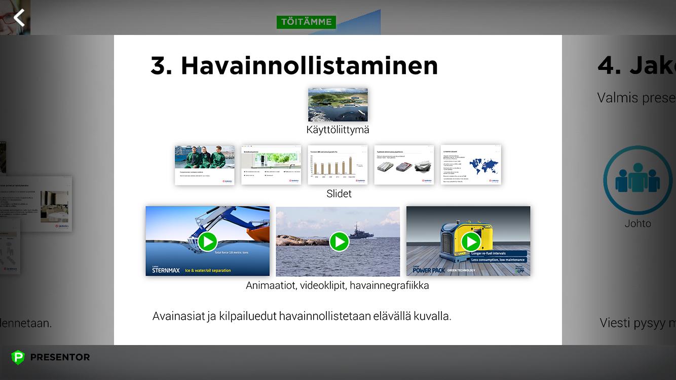 คุณสามารถแสดงสไลด์การนำเสนอได้อย่างราบรื่นซูมเข้าและออกมีอินเตอร์เฟซ 3D ในการนำเสนอวิดีโอการแสดงและภาพเคลื่อนไหว ฯลฯ
