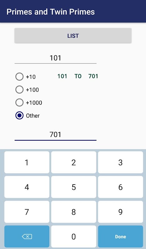 โปรแกรมเสนอให้ป้อนตัวเลขเริ่มต้นและเลือกช่วงเวลาจากสามทางเลือก (10, 100, 1,000) นอกจากนี้ยังมีตัวเลือกเพิ่มเติมสำหรับการป้อนทั้งหมายเลขเริ่มต้นและหมายเลขปลายทาง ในกรณีหลังนี้ ผลต่างสูงสุดและต่ำสุดที่อนุญาตของหมายเลขเริ่มต้นและหมายเลขเทอร์มินัลคือ 2000 และ 2 ตามลำดับ