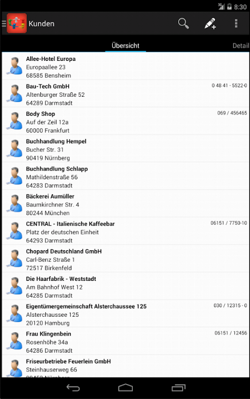 เขาเห็นการนัดหมายที่เปิดอย่างรวดเร็วประวัติลูกค้าการติดต่อข้อเสนอและใบแจ้งหนี้ แน่นอนรายละเอียดการติดต่อทั้งหมดยังมีให้โทรออกอย่างสะดวกสบายส่งอีเมลหรือเพื่อเริ่มนำทางไปยังลูกค้า เอกสารการเยี่ยมชมลูกค้าการสร้างผู้ติดต่อใหม่หรือการเปลี่ยนแปลงข้อมูลอื่น ๆ สามารถทำได้ทางออนไลน์โดยตรง แน่นอนว่าทั้งหมดนี้เกิดขึ้นตามสิทธิ์การเข้าถึงของแต่ละบุคคล