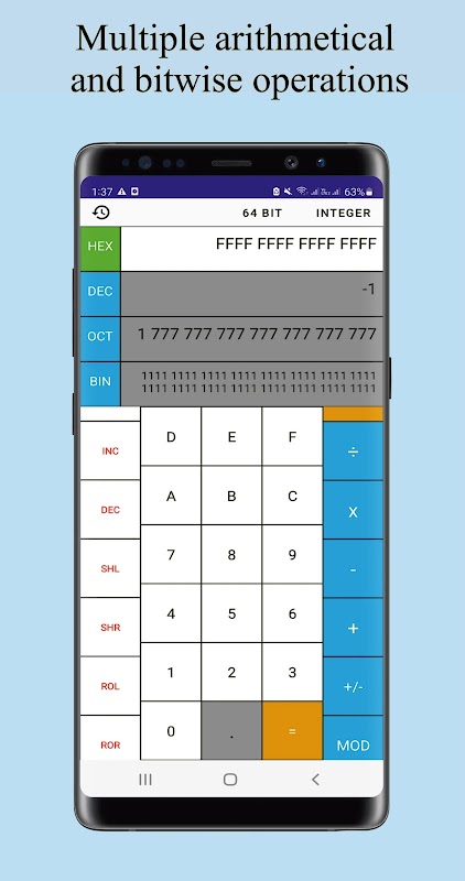 เครื่องคิดเลขนักพัฒนานี้มีคุณสมบัติดังต่อไปนี้: