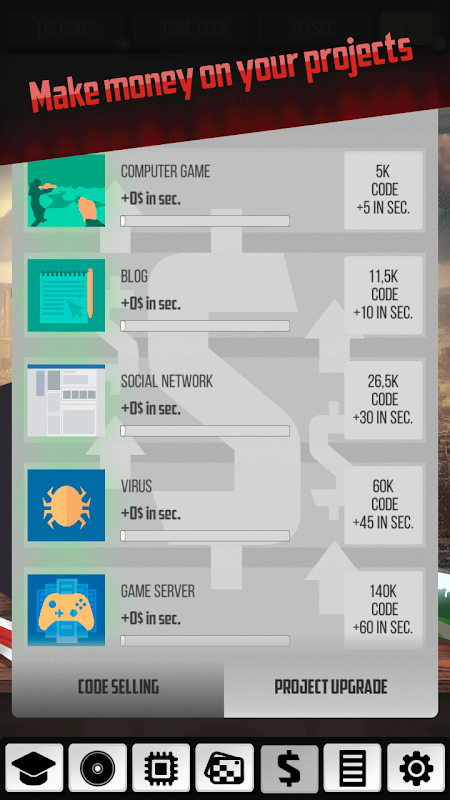 - โครงการประเภทต่างๆอัพเกรดพวกเขาทั้งหมดและรับเงินจำนวนมาก!