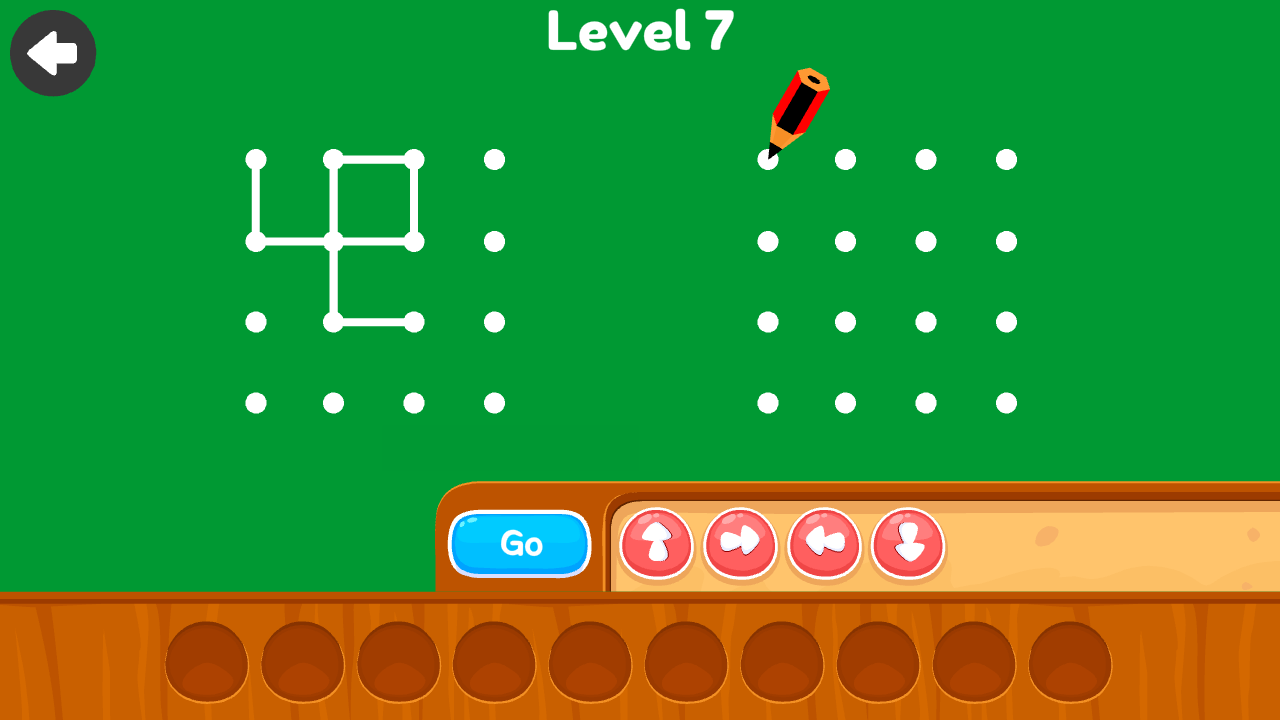 The game is a fun and innovative coding game to teach children the basics of programming and algorithm. It teaches coding with fun games in the form of connect the dots. Your kid is too young to read? Don't worry! The game contains no text but focuses on coding logic.