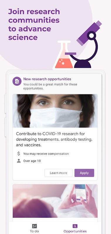 เข้าร่วมการวิจัยจากที่บ้านของคุณ: ค้นหาโอกาสในการวิจัยที่เหมาะกับสุขภาพและความสนใจของคุณ และทำกิจกรรมเพื่อการศึกษาที่คุณได้เข้าร่วมผ่าน Baseline งานวิจัยของเราครอบคลุมถึง COVID-19, สุขภาพหัวใจ, โรคลำไส้แปรปรวน, สุขภาพจิต, การนอนหลับ และอื่นๆ อีกมากมาย คุณอาจได้รับโอกาสในการทดสอบเทคโนโลยีใหม่ๆ