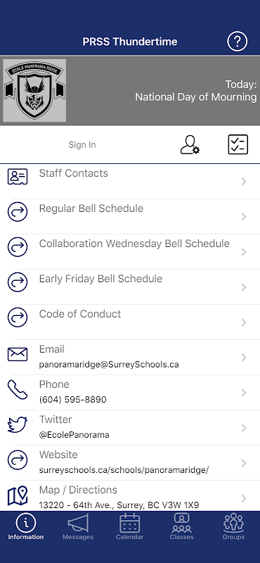แอปพลิเคชันมือถือ École Panorama Ridge Secondary อย่างเป็นทางการ