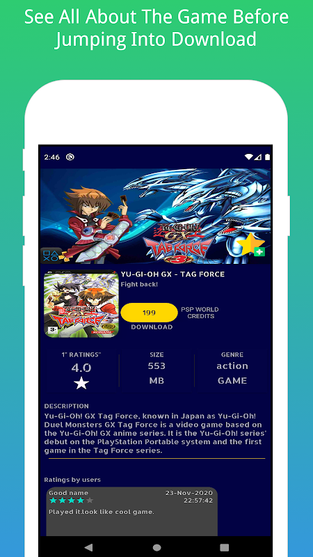 เราแนะนำ Psp World Credits (PWC) เครดิตนี้ใช้เพื่อดาวน์โหลดเกมจากแอป เมื่อสร้างบัญชีคุณจะได้รับรางวัล 99 PWC คุณสามารถรับ PWC เพิ่มเติมจากส่วนโปรไฟล์โดยดูโฆษณา