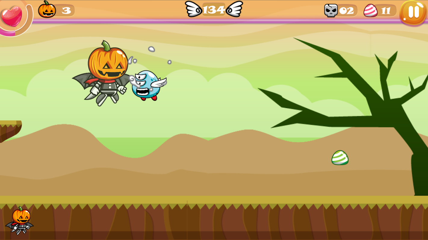 รวบรวมลูกอมและเพิ่มพลังระหว่างทางเพื่อช่วยให้มนุษย์ฟักทองหลบหนีได้ไกลขึ้น