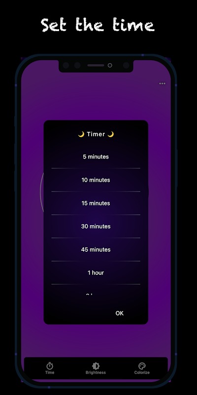✔️️ตั้งเวลาที่คุณต้องการให้แสงสีม่วงเปิดใช้งานบนโทรศัพท์ของคุณ