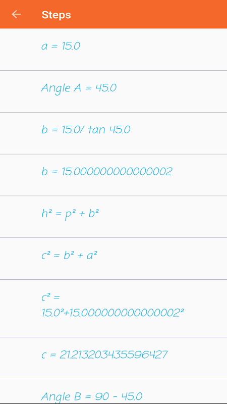 A calculator that uses the pythagoras theorem to calculate the sides and angles in a right angled triangle. All you will need to do is to input at least two values of the triangle and it will do the rest for you. Really helpful for classes including college level Trigonometry. Even more, this calculator generates step by step solution showing how it arrived at the results.