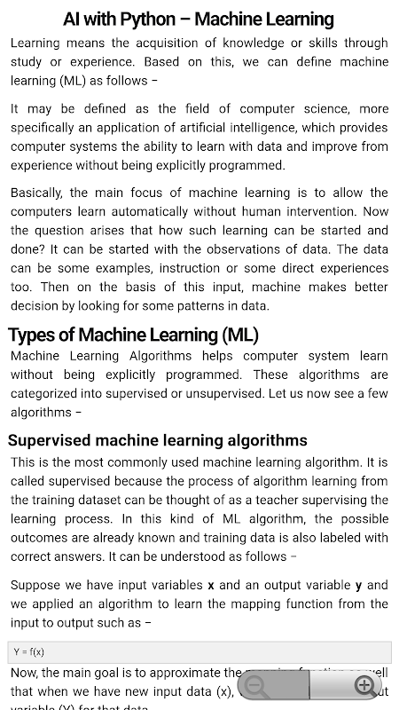 Artificial intelligence is the intelligence demonstrated by machines, in contrast to the intelligence displayed by humans. This app covers the basic concepts of various fields of artificial intelligence like Artificial Neural Networks, Natural Language Processing, Machine Learning, Deep Learning, Genetic algorithms etc., and its implementation in Python.