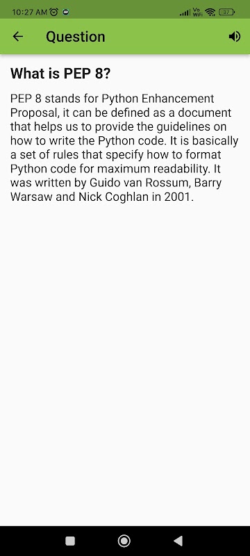 "Python Interview Questions" เป็นแอปพลิเคชั่นมือถือที่มีคุณลักษณะหลากหลายซึ่งออกแบบมาเพื่อช่วยเหลือนักเรียน ผู้หางาน และมืออาชีพในการเตรียมตัวสำหรับการสัมภาษณ์โดยเน้นที่ C ด้วยการรวบรวมคำถามมากกว่า 150 ข้อ แอปนี้ครอบคลุมสเปกตรัมกว้างๆ ของ Python ที่เกี่ยวข้อง หัวข้อเพื่อช่วยให้ผู้ใช้เพิ่มพูนความรู้และเพิ่มความมั่นใจในระหว่างการสัมภาษณ์