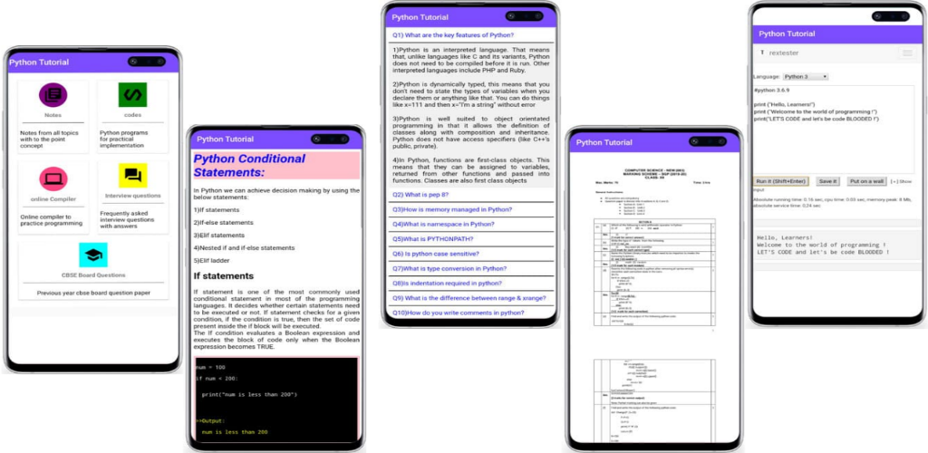 แอพพลิเคชั่นการเขียนโปรแกรมนี้ประกอบด้วยพื้นฐานที่อธิบายไว้เป็นอย่างดีและพื้นฐานที่จำเป็นสำหรับการทำความเข้าใจและเรียนรู้ภาษา Python
