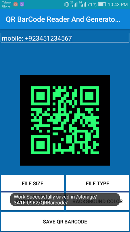 ไม่เพียง แต่มันจะสแกน แต่ยังสร้างรหัสสี Qr หากคุณต้องการที่จะสร้าง QR โค้ดของคุณเองแล้วสร้างรหัส QR ของข้อมูลใดสีใดขนาดใดและบันทึกไว้ โดยค่าเริ่มต้นรหัส QR จะอยู่ในสีดำและสีขาวเหมือนคนอื่น ๆ แต่คุณสามารถเปลี่ยนสีและสีพื้นหลังของ QRCode ถ้าคุณต้องการ