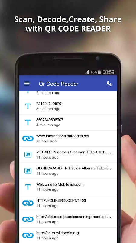 สแกนและอ่านทุกประเภท QR / บาร์โค้ดเช่นข้อความ, URL SBN ผลิตภัณฑ์ติดต่ออีเมล ฯลฯ