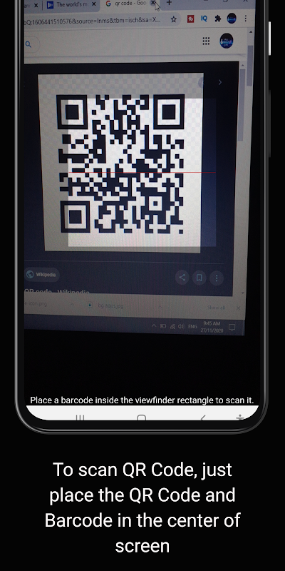 To scan QR code, just place the QR code and Barcode in center of screen. The QR Code Scanner decode all kinds of QR code including URL, Text, E-mail, Phone, SMS, VCard, MeCard, Location, Facebook, Twitter, Youtube, Wi-Fi, Event and etc