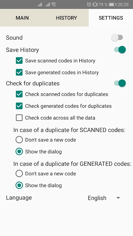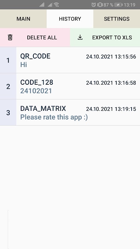 - เนื้อหาของรหัสที่สแกนและสร้างมีอยู่ในแท็บประวัติ
