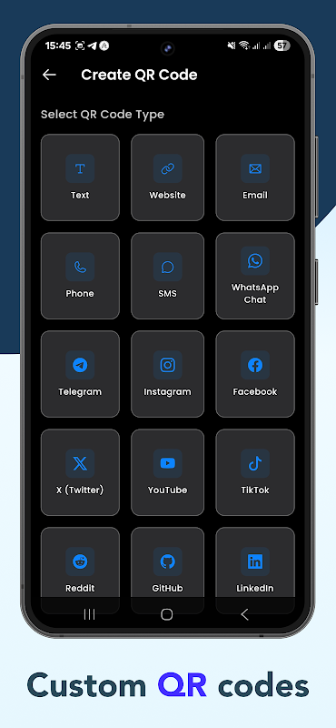 • สร้าง QR สำหรับ URL, Wi-Fi, รายชื่อติดต่อ (vCard), ข้อความ, อีเมล, โทรศัพท์
