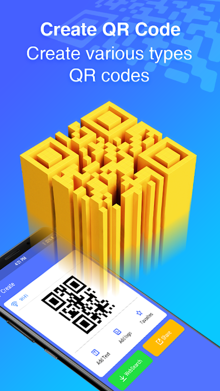 You can use QR code scanner to create QR code and barcode for Links, Text, Contact info, content in clipboard, wifi info, tel number, and so on. You can save the created QR / Bar code code image to your album. The best QR code / Barcode creator and generator. You can share your created QR code / Barcode to your friends easily.