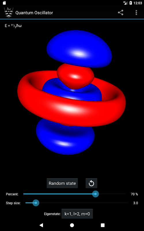 app นี้ visualizes eigenstates ของสามมิติประสานมือควอนตัมโดยการวาดภาพพื้นผิวข้ามส่วนของตารางการทำงานของคลื่นใน OpenGL โดยใช้อัลกอริทึมวงก้อน ทรงกลมพื้นฐานการประสานงานเป็นลูกจ้าง