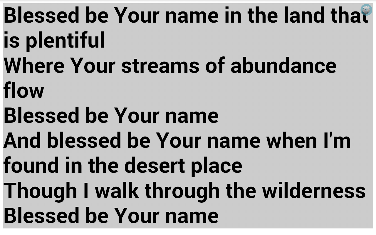 มุมมองแบบเต็มหน้าจอของเนื้อเพลงจากการฉาย Quelea ซอฟต์แวร์ฟรี