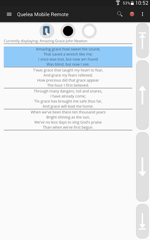 Quelea ระยะไกลมือถือช่วยให้คุณสามารถควบคุมระยะไกลคริสตจักรฟรี Quelea ซอฟแวร์การฉาย มันเป็นรุ่นที่กำหนดเองของคุณลักษณะการควบคุมระยะไกลเว็บไซต์เข้าถึงได้ง่ายขึ้น app ที่มาเปิดและรหัสที่มาสามารถพบได้ที่นี่: https://github.com/quelea-projection/quelea-android-remote