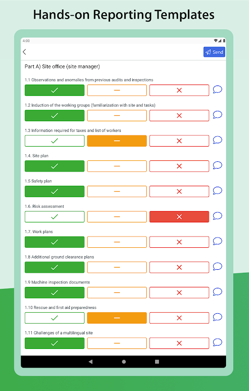 ด้วยแอพ Quentic ข้อมูล HSEQ สามารถส่งได้อย่างรวดเร็วและง่ายดายช่วยให้พนักงานทุกคนมีส่วนร่วมในกระบวนการรายงานโดยไม่ต้องใช้ความพยายาม รายงานการพลาดโอกาสเหตุการณ์ความเสียหายของทรัพย์สินอุบัติเหตุและส่งการประเมินความเสี่ยง ใช้รายการตรวจสอบการตรวจสอบที่ใช้งานสะดวกพร้อมแค็ตตาล็อกคำถามสร้างรายงานการตรวจสอบและโปรโตคอลสำหรับการตรวจสอบไซต์แบบแนะนำ เริ่มต้นการดำเนินการแก้ไขและปรับปรุงการแลกเปลี่ยนข้อมูลเชิงรุกระหว่างผู้เข้าร่วมทั้งหมด ตัวบ่งชี้และการประเมินที่เกี่ยวข้องช่วยให้สามารถตรวจสอบ HSEQ ได้อย่างรวดเร็วผ่านทางสมาร์ทโฟน