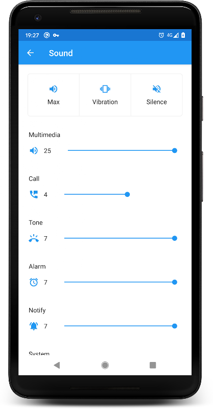 * Control or customize multimedia sound, call, tone, alarm and notifications.