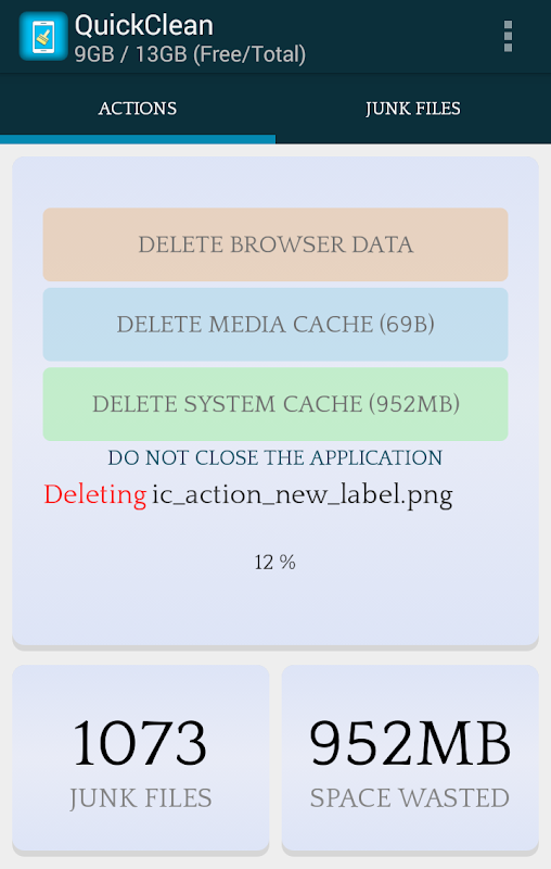 Every application you use creates cache and unwanted files which unnecessarily uses up your storage space and memory , and slows down your phone. QuickClean deletes these junk files and improves your phone's performance at the same time increasing your free storage space and memory.