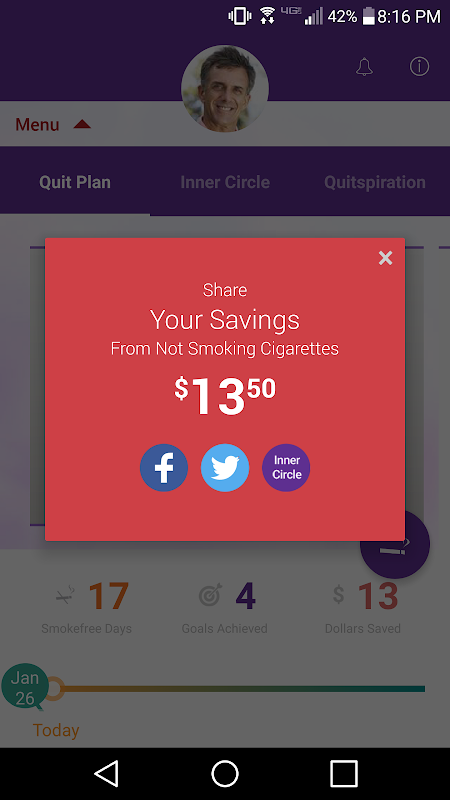 Quitter’s Circle helps you quit smoking with the support of friends and family, as well shareable resources, including: