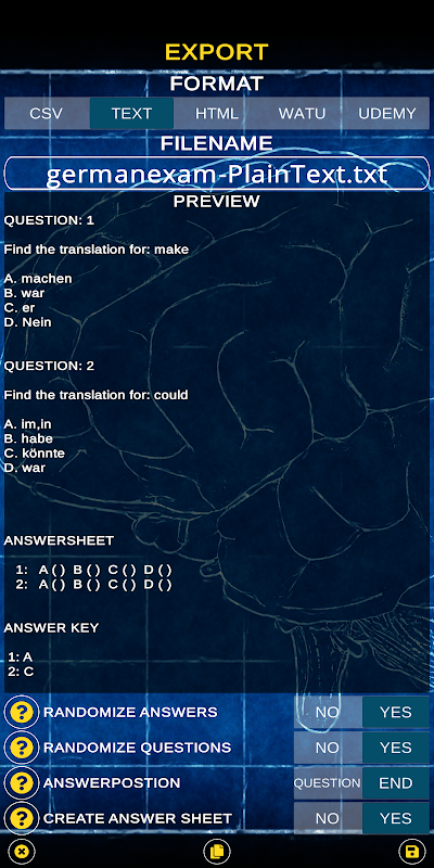 - Questions/Answers can be randomized/ordered before export
