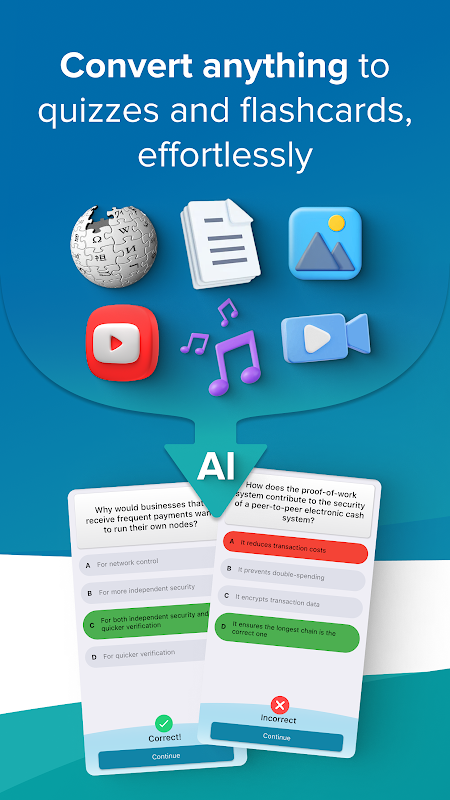 🔄 แปลงอะไรก็ได้เป็นแบบทดสอบ: เพียงอัปโหลดรูปภาพ (JPG, PNG, WEBP ฯลฯ), ไฟล์ (PDF, DOC, PPTX ฯลฯ), ไฟล์เสียง (MP3, WAV ฯลฯ), วิดีโอ (MP4, MOV ฯลฯ) หรือลิงก์เว็บไซต์ (รวมถึง YouTube) แล้วปล่อยให้แอปของเราทำงานอย่างมหัศจรรย์ Quizatic จะแปลงเนื้อหาต้นฉบับของคุณเป็นแบบทดสอบแบบอินเทอร์แอคทีฟอย่างชาญฉลาด ทำให้การเรียนรู้ไม่เพียงแต่มีประสิทธิภาพ แต่ยังสนุกอีกด้วย!