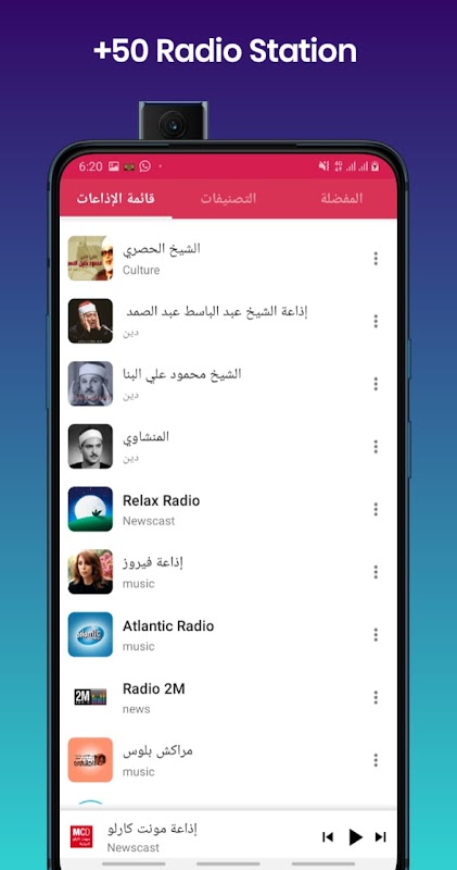√ استمع إلى الراديو المباشر أثناء استخدام التطبيقات الأخرى أو في وضع الاستعداد لهاتفك الذكي