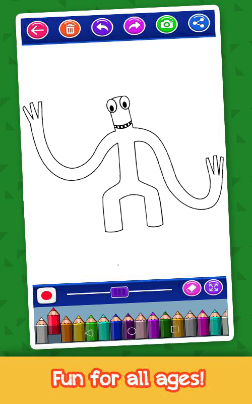 ทุกวัยจะได้เรียนรู้การวาดภาพอย่างถูกต้องโดยใช้สีที่ถูกต้อง และจะสนุกกับการระบายสี Rainbow Friends Green บทที่ 2 ในแอพของเราซึ่งมีฮีโร่ประมาณหนึ่งร้อยตัวและหน้าระบายสีสยองขวัญ
