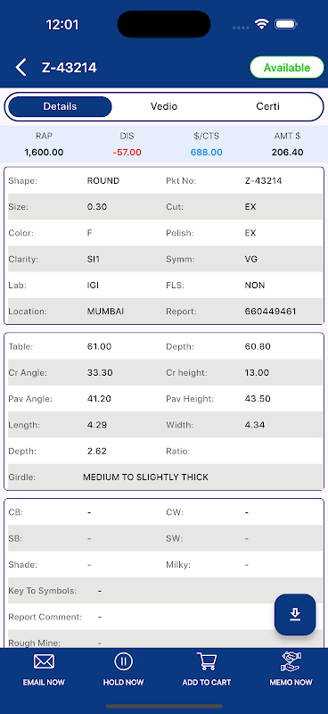 สินค้าคงคลังสด: สินค้าคงคลังของเราได้รับการอัปเดตแบบเรียลไทม์ตลอด 24 ชั่วโมงทุกวัน เข้าถึงเพชรที่มีอยู่ทั้งหมดได้ตลอดเวลา