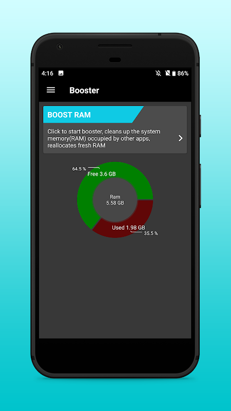 RAM Booster give your device the lighting speed in one tap.